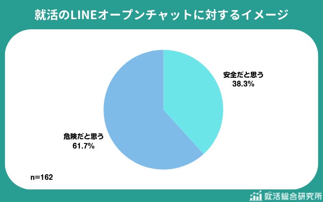 就活生の61.7%がLINEオープンチャットを「危険」と回答し、安全だと感じている38.3%を大きく上回りました。リスクへの警戒感が強く、就活生の間で慎重な姿勢が見られます。