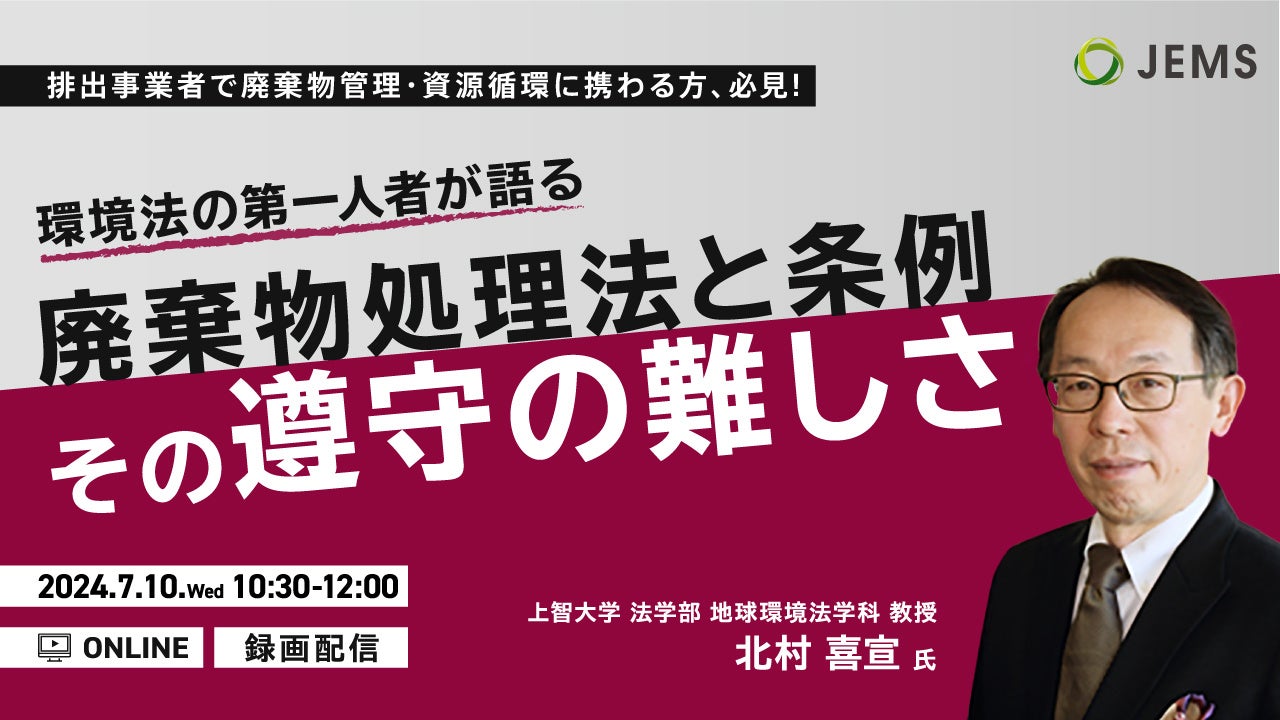 【7/10(水)開催】環境法の第一人者が語る『廃棄物処理法と条例、その遵守の難しさ』(無料オンラインセミナー)