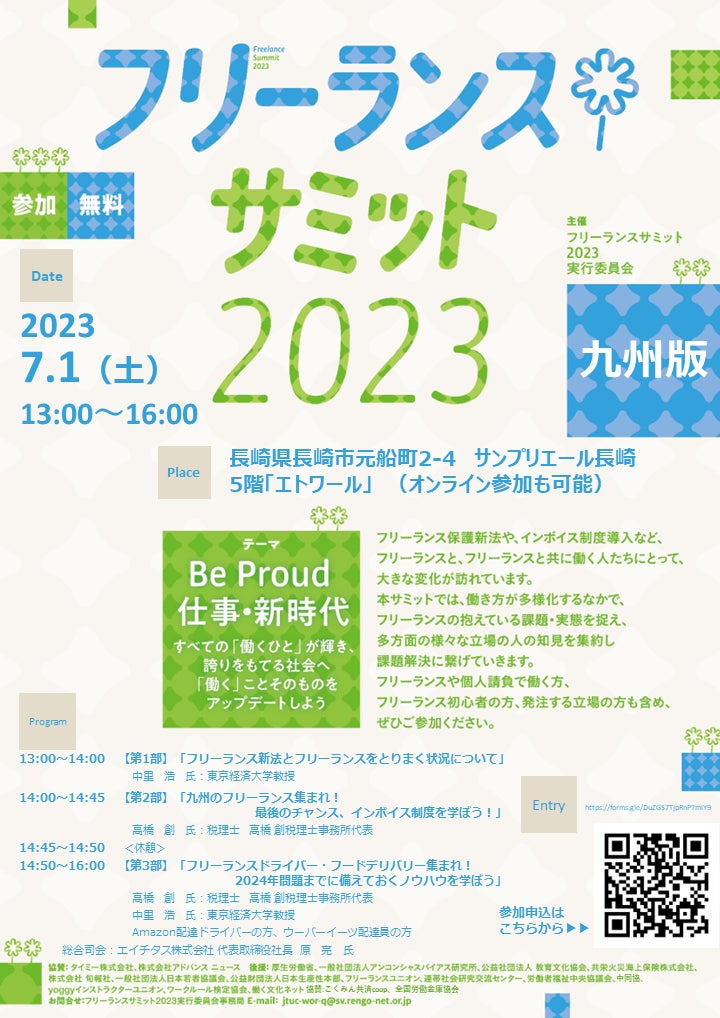 フリーランスサミット2023九州版 登壇者決定のお知らせ https://jtuc-network-support.com/freelancesummit2023