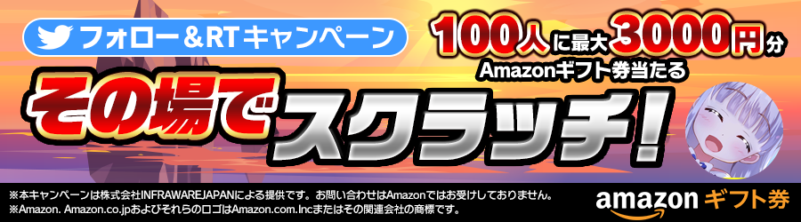 今回も公式Twitterで大好評の、合計100人に最大3000円のAmazonギフト券が当たるインスタントウィンキャンペーンも開催いたします。