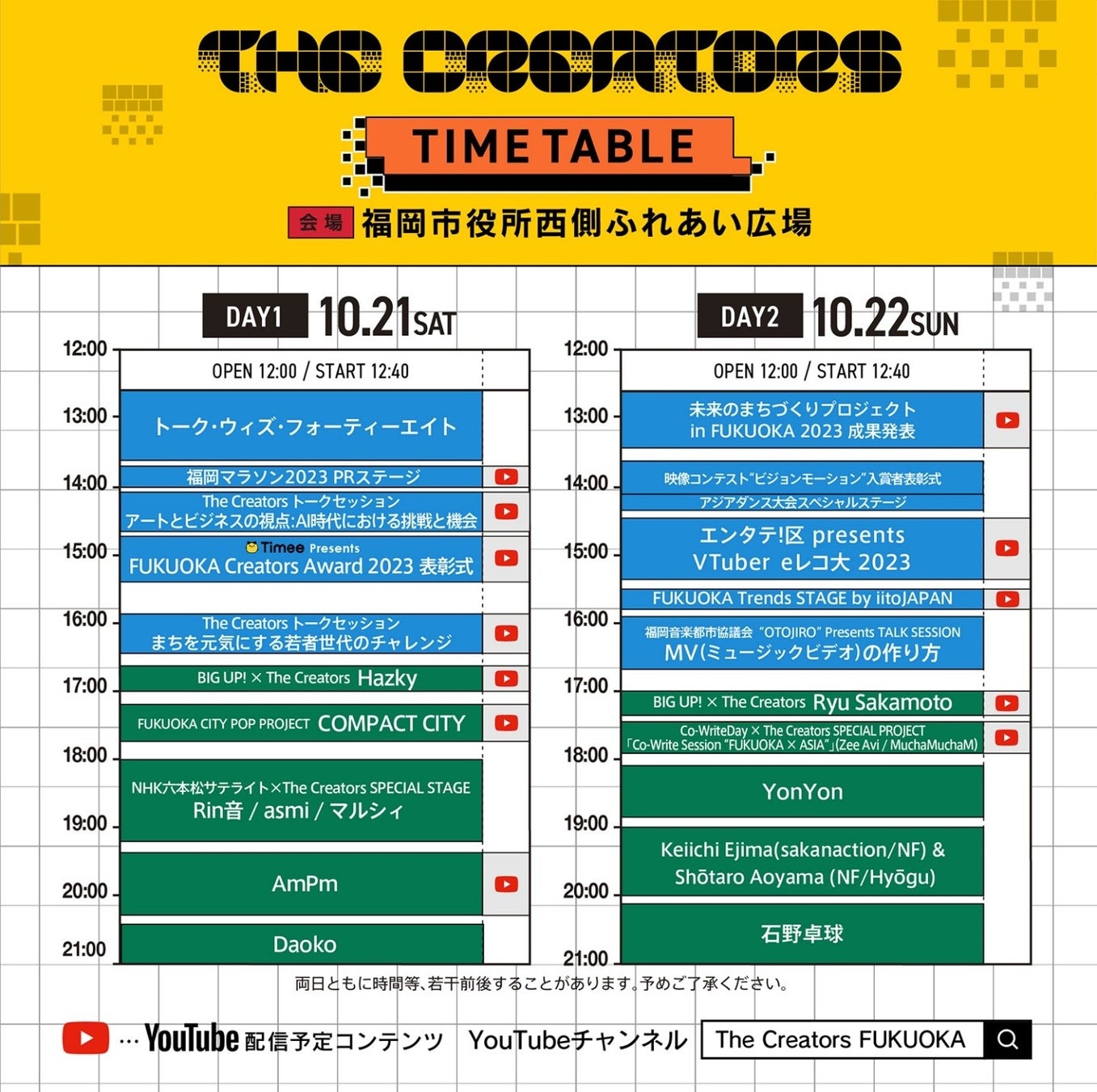 「The Creators」クリエイティブ×エンターテインメントを体感!10月21(土)、22(日)福岡市役所西側ふれあい広場などで開催!!