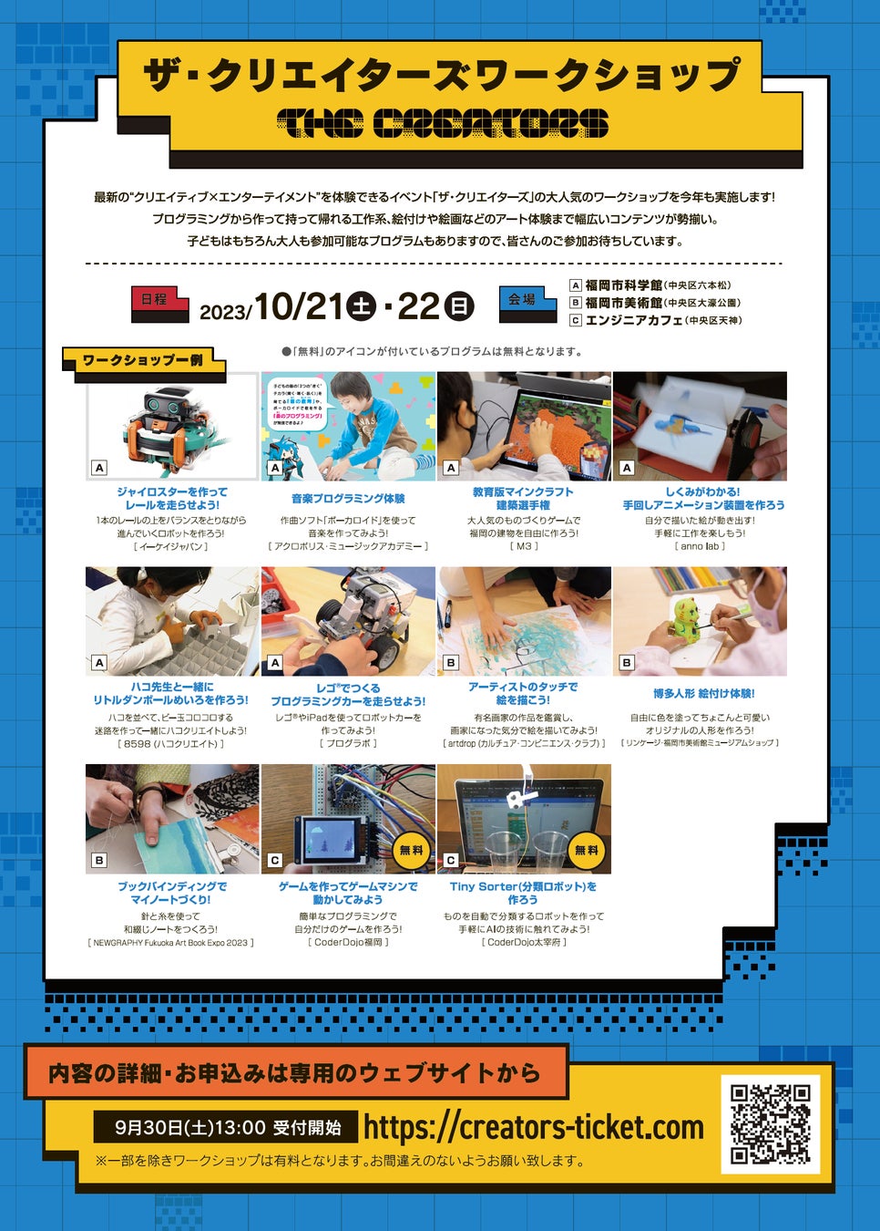 人気のプログラミング系から工作系、博多人形への絵付けやアート体験など幅広い内容のワークショップを開催