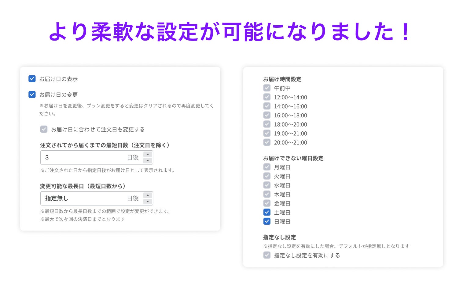 お届け日の変更機能がアップデートし、更に柔軟な設定が可能になりました。