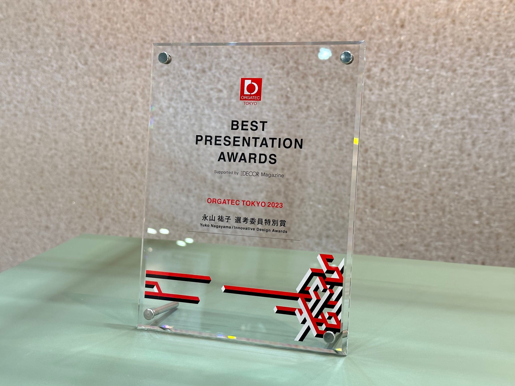 「ベストプレゼンテーションAWARD」は、オルガテックに出展している120以上のブランドを対象に、これからの働き方に対してデザインができることを具現化したブースを選ぶコンペティションで、全体コンセプト、デザイン性、機能性、独自性、サステナブル性を基準に審査されます。建築家の永山祐子氏やアストリッド・クライン氏など著名な選考委員によってグランプリや準グランプリが選ばれ、各ブースが力の入ったプレゼンテーションを競い合います。