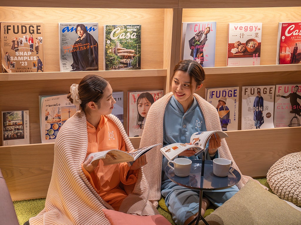 おふろcafé yusaでは、ブランケットの無料貸し出しを実施中。ご自由にお取りいただき、お好きな場所でご利用いただけます。