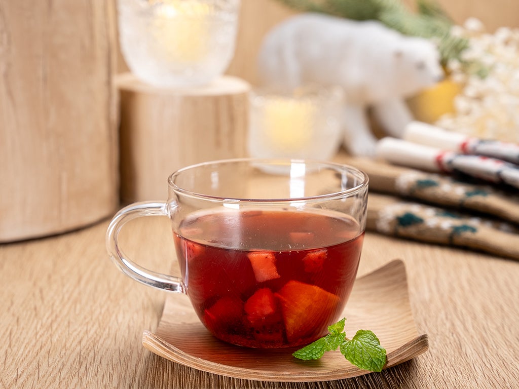 濃厚なぶどうジュースに、生姜とフルーツをたっぷり入れた、冬にぴったりのドリンクです。紅茶の香りが華やかな、芯からあたたまる一杯に仕上げました。