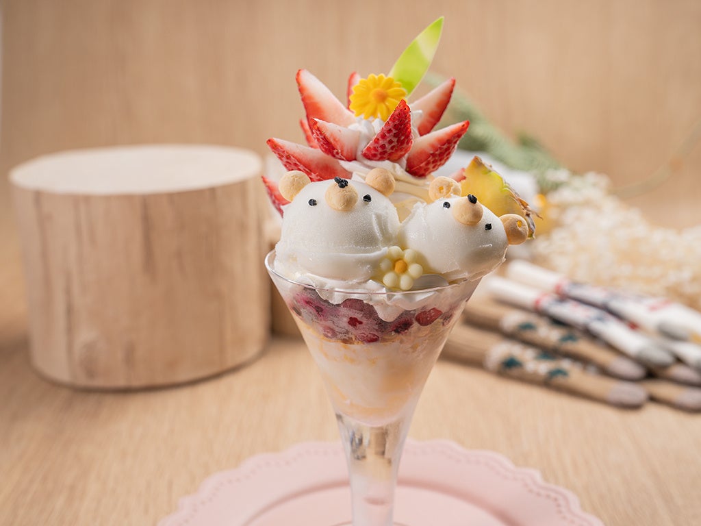 洋梨アイスとヨーグルトで作ったしろくまがポイントのフルーツパフェです。温泉やサウナ後に食べたくなるような、さっぱりとしたお味です。