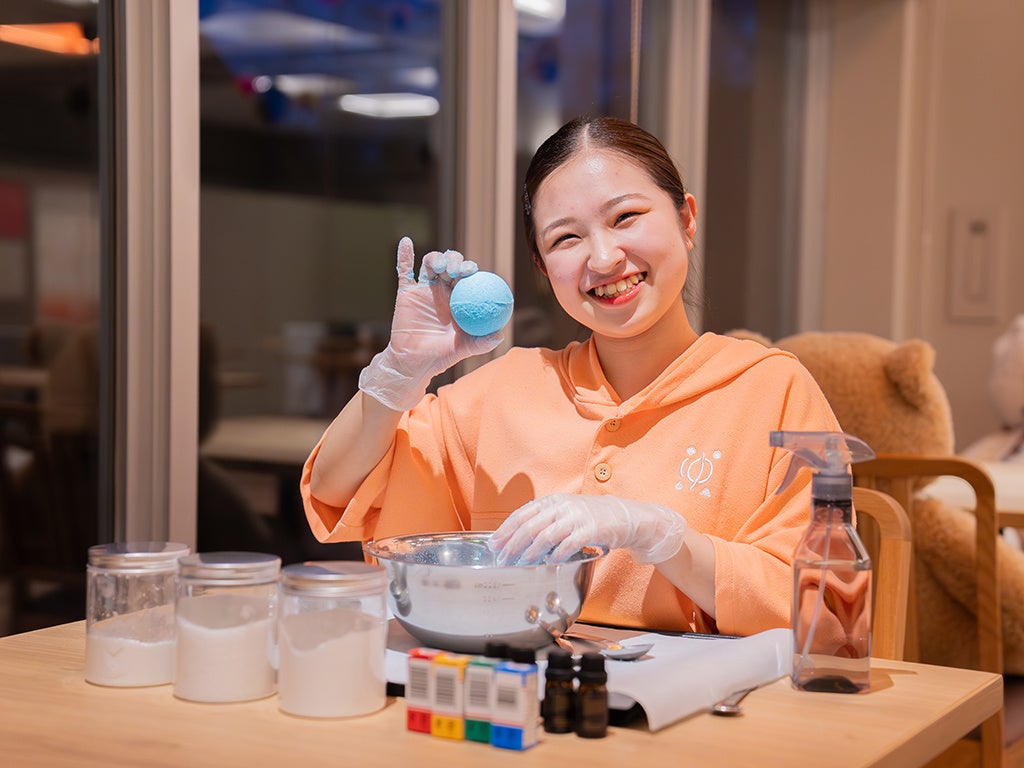 お子様でも安全に楽しめる、バスボム作り体験ワークショップです。選べるアロマオイルと食紅で、自分だけのバスボムを作ることができます。
