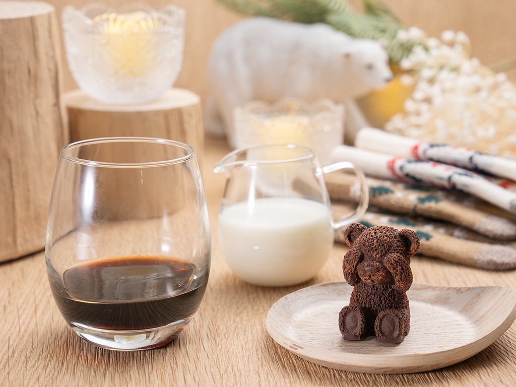 くまさんのチョコが入った特製カクテルです。コーヒーリキュールにホットミルクを注ぎ、チョコレートを溶かしながらお召し上がりください。