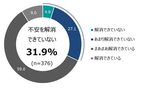 しかし、すでに連絡や帰省の頻度を増やすなどの対応をしている人に、どれくらい不安を解消できているか聞いたところ、31.9%が「解消できていない」と回答しており(「解消できていない」(4.8%)「あまり解消できていない」(27.1%)の合計)、連絡の頻度を増やすといった現状の対応だけでは不安を解消できていない人もいることが分かりました。【図5】