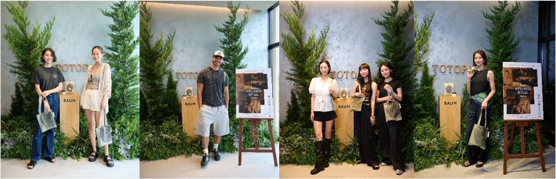 今回のコラボレーションに先駆け8月28日(木)と29日(金)にはメディアプレビューが実施され、中村勘九郎さん・七之助さん、前田愛さん・亜季さん姉妹、浅利琳太郎さん、高橋アランさん、モデルの入夏さん、涼那さんらが来場し、BAUMとの出会いによって生まれた「13のリチュアル」をご体験いただきました。
