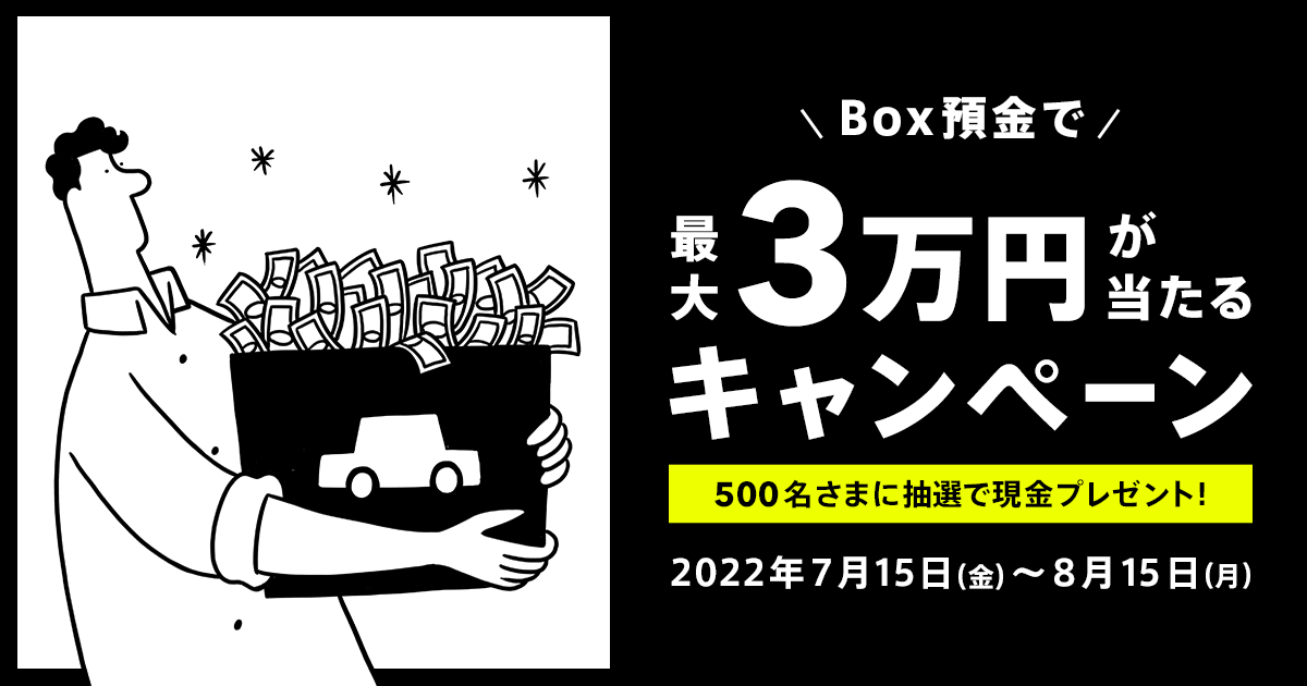 総勢500名さまに抽選で最大現金3万円をプレゼント!2022 夏のBox預金キャンペーン