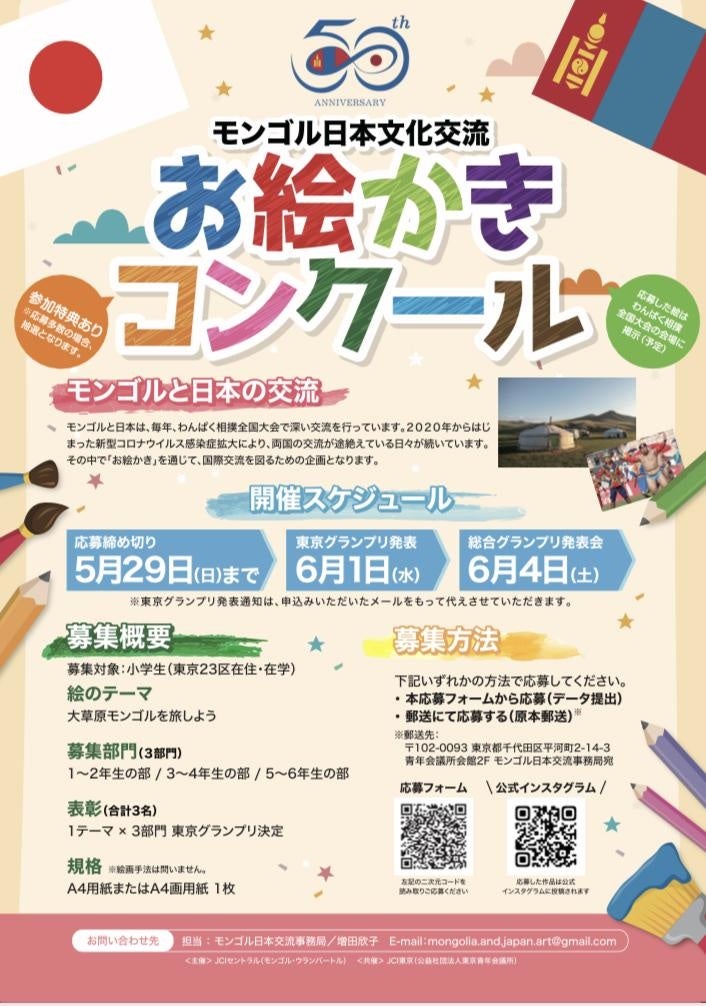 【小学生参加者募集】モンゴルと文化交流しよう!「お絵描きコンクール」開催決定!締め切りは2022年5月29日まで!