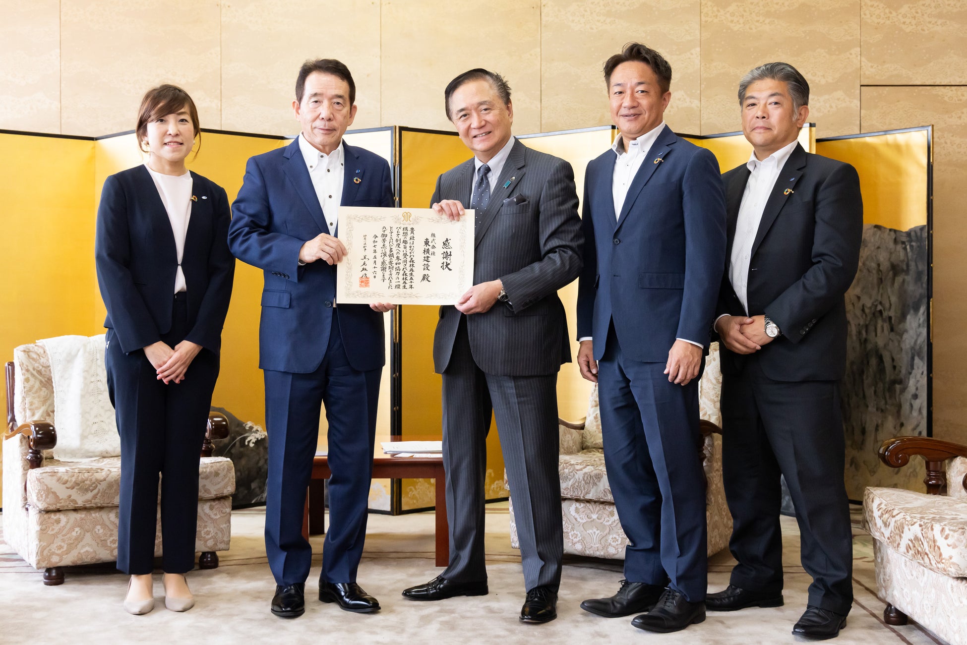 2025年5月16日、感謝状贈呈式が神奈川県庁で行われ、神奈川県黒岩祐治知事、東横建設からは代表取締役樋口朗、常務取締役統括本部長竹中和広、他二名が出席致しました。