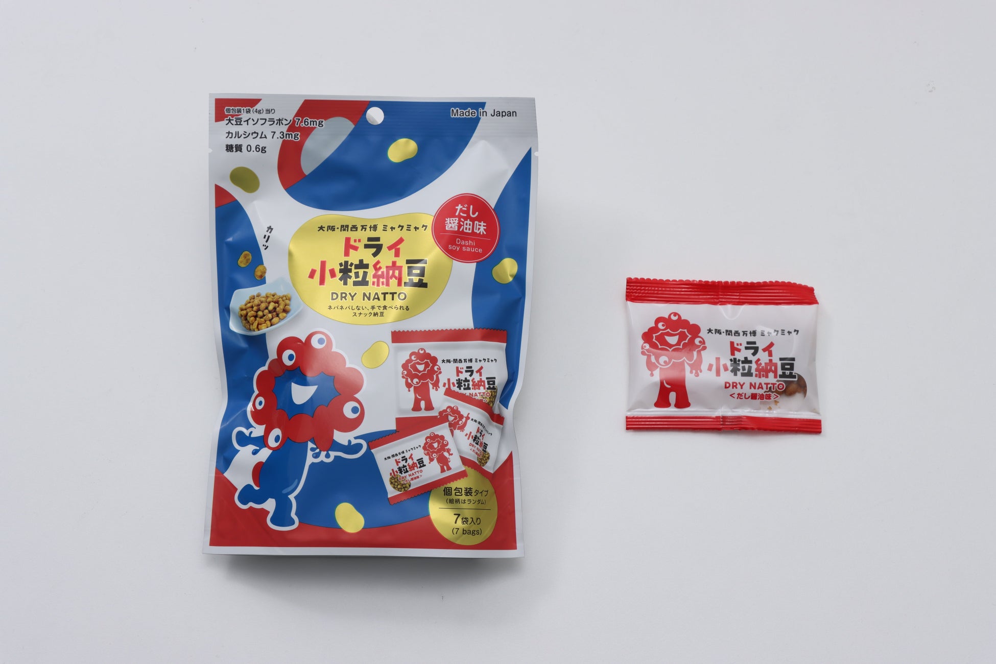 大阪・関西万博公式キャラクターのミャクミャクをパッケージにデザイン「大阪・関西万博 ミャクミャク ドライ小粒納豆」が新発売