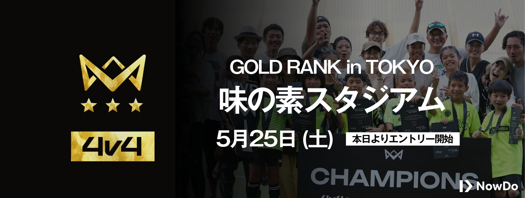 NowDo株式会社(本社:東京都新宿区、代表取締役社長:本田圭佑)は、【4v4】の予選ラウンド、ゴールドランク大会「GOLD RANK in TOKYO(以下、本大会)」を、2024年5月25日(土)に東京都調布市にある味の素スタジアムにて開催することをお知らせいたします。なおエントリーは本日、4月25日(木)から開始いたします。チームの選出方法は、大会への申し込みがあったチームの中から、関東地区での累計エントリー数が多い順に24チームを選出いたします。(関東地区以外や初めての方もエントリー可能)また、本大会の優勝チームはJAPAN CUPの出場権を獲得することができるほか、4v4オリジナルメダル等の記念品も贈呈いたします。2024年シーズン、初のチャンピオンはどこのチームになるのでしょうか。