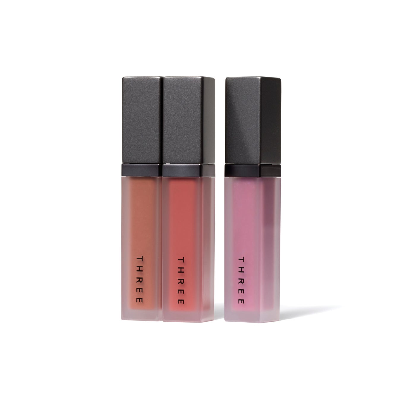 軽やかに伸び広がり、つけた瞬間に唇の上で2層のヴェールが形成される、THREE独自の「デュアルヴェール処方」。クリアな発色の“色彩ヴェール”が唇にフィットし、その上に“クリアヴェール”が重なり、2層が光をレイヤード。透明感とやわらかなツヤ感を一層引き立たせ、ライブリーな表情を作ります。