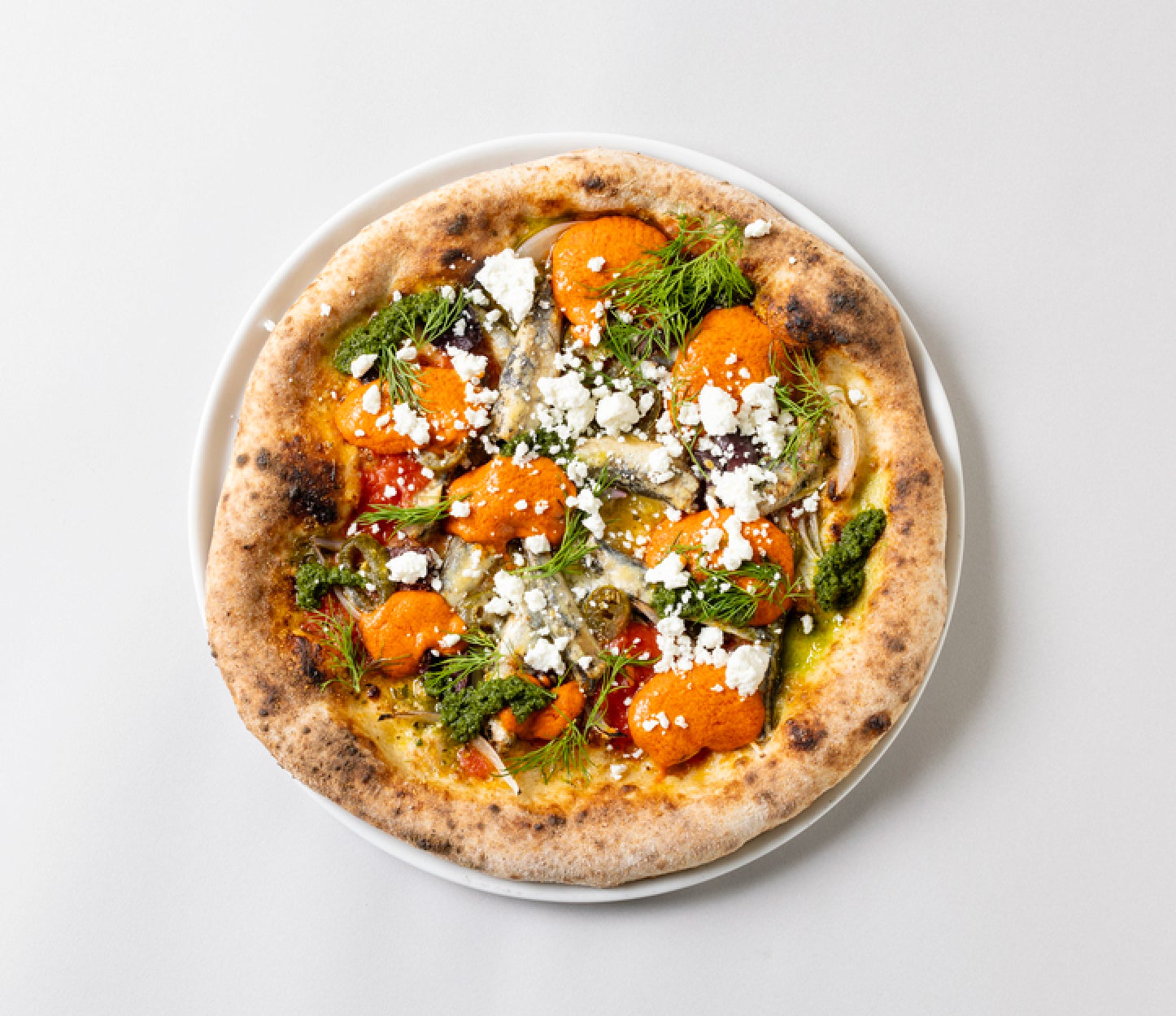 瀬戸内の小いわし/ロメスコソース・サルサベルデ・フェタ