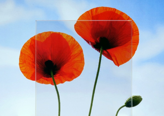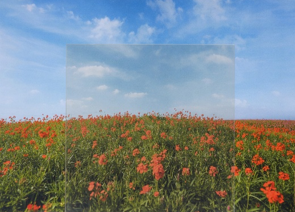 花の赤色、葉の緑色、空の青色はより濃く鮮やかに、雲の白はより白く見えます。