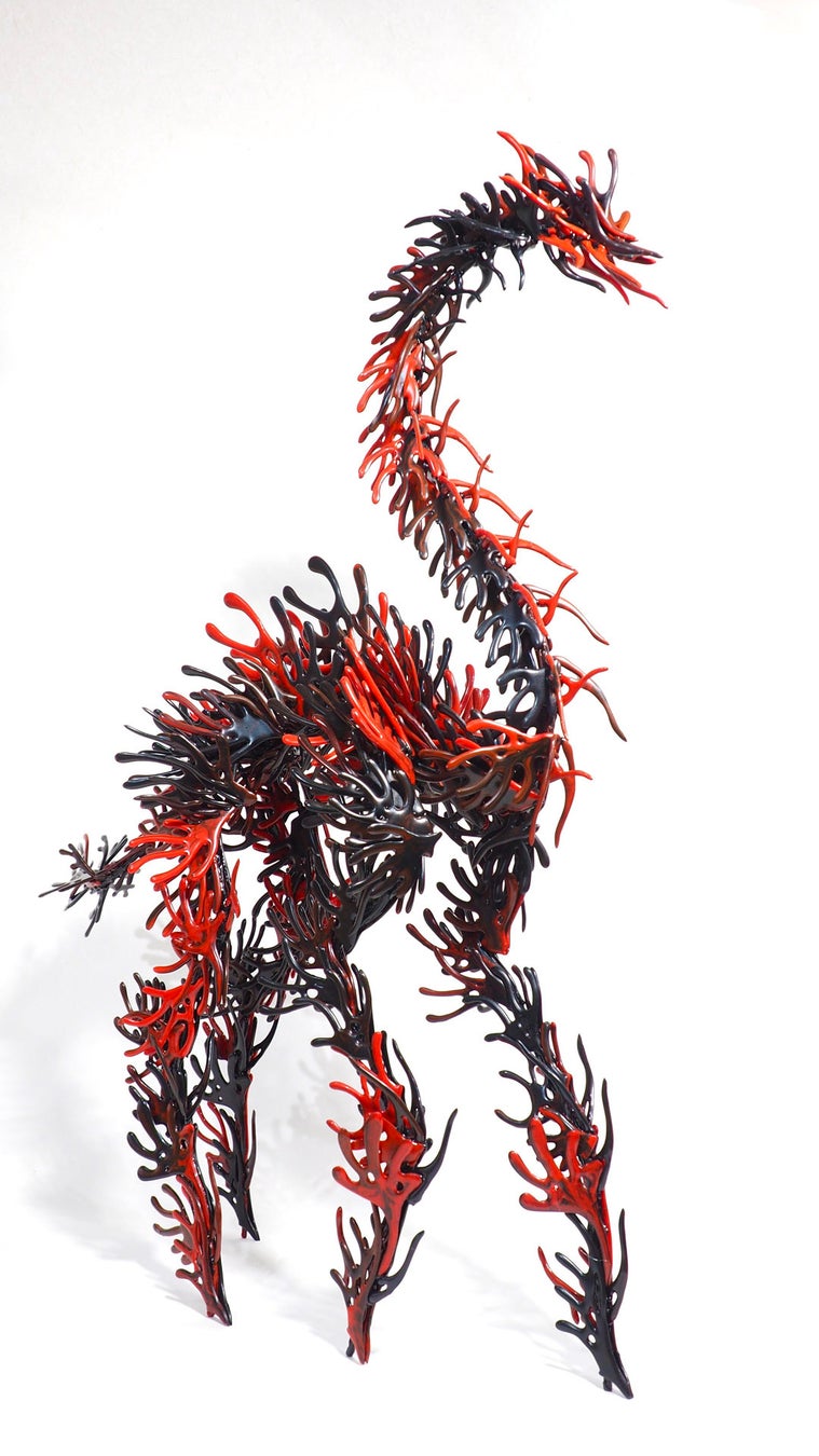 そうして架空の生命体のシルエットを追求し、その生命力を表現するうちに、麟太郎は自然そのものが宿す神秘の力に気付き、それに対して畏怖の念を強く抱くようになりました。その結果として、近年の彼の作品には自然とは逆行する消費社会への警告が反映されています。