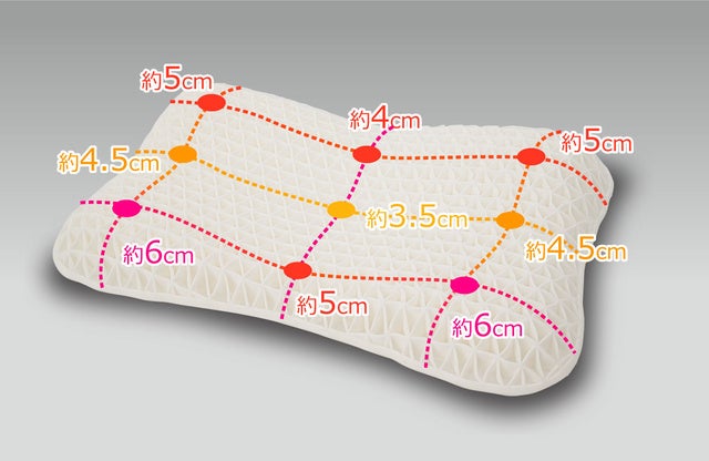 上層:小さな三角形(高反発性)・・・複数の点でバランス良く頭を支える