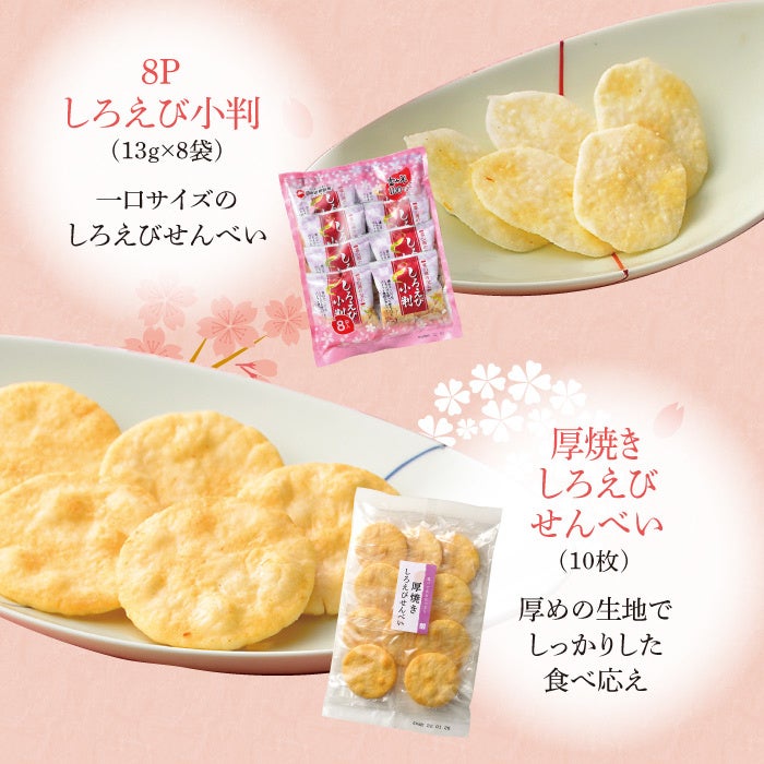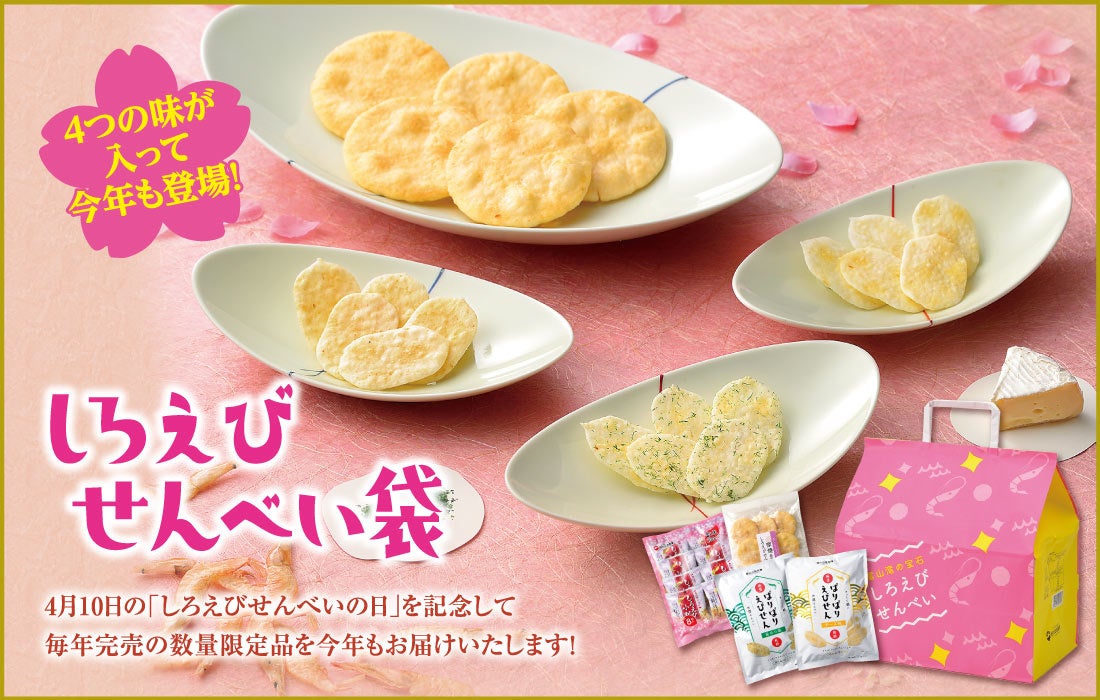 春の季節商品 4種類のしろえびせんべいが楽しめる「しろえびせんべい袋」を発売 日の出屋製菓産業