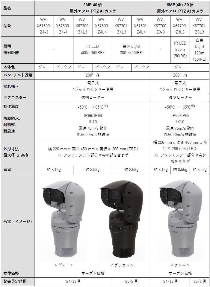i-PRO(アイプロ)株式会社(本社:東京都港区、代表取締役社長 尾崎祥平、以下i-PRO)は、極寒や酷暑、台風、潮風などに晒されながらも広い範囲を詳細に見守り続ける「屋外エアロPTZ AIカメラ」(以下、新エアロPTZ)をフルモデルチェンジし、2MP (1080p)モデルと8MP(4K)モデルの9機種を2024年12月より発売します。