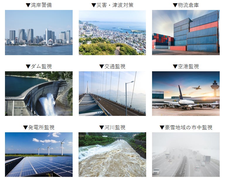 広い範囲を俯瞰しつつ、必要時はピンポイントで詳細の確認が必要となる、環境の厳しい以下のような場所での安全・安心の確保に威力を発揮します。