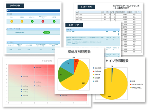 “次世代QAエンジニア”が、QAの知見によるリスク評価と、開発者の知見による影響度の抽出とランク付けをワンストップで実施することにより、コードのどこにリスクがあるかを的確に識別し、そのリスクの重要度を算定するリスク評価レポートを作成したうえで、プロジェクトに最適な指標や閾値、対応方針についてご提案いたします。また、顧客ニーズにあわせて、必要なOSSの静的解析ツールのカスタマイズ等にも柔軟に対応いたします。