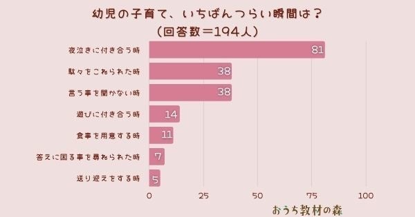 - 【総括】幼児の子育て、いちばんつらい瞬間1位は『夜泣きに付き合う時』でした