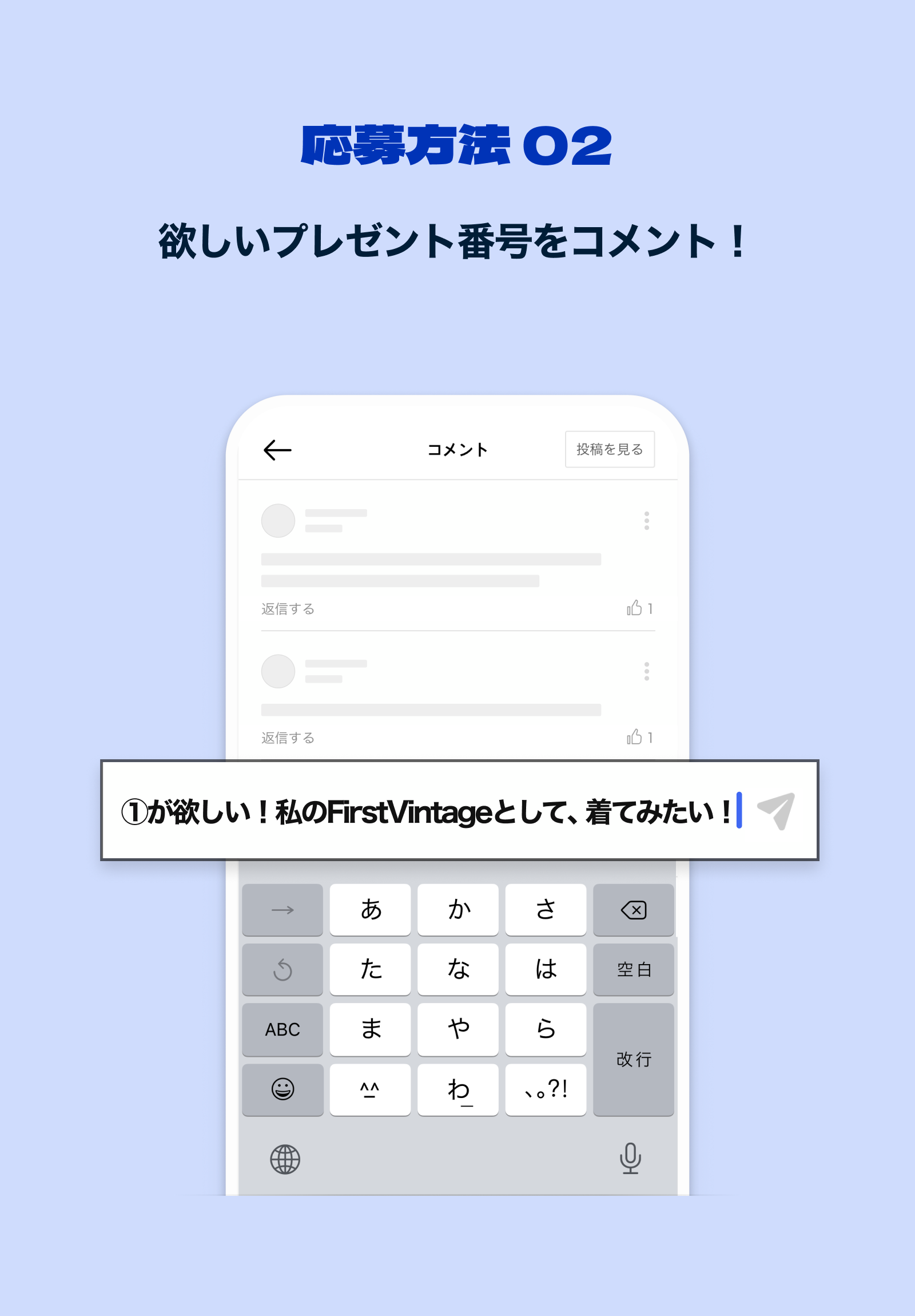 「キャンペーン記事」のコメント欄に以下をコメントして応募完了