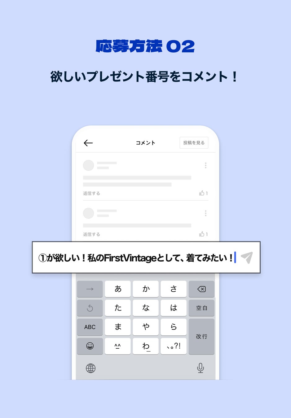 内容:古着やファッション好きのクリエーターが「好きな古着アイテム」、「古着好きのきっかけとなった人やお店」、「洋服は好きだけど、初めて古着を試す」などのテーマを設定し、「私のFirst Vintage」について特別コンテンツをお届けしながら、厳選した古着アイテムをプレゼントする企画です。