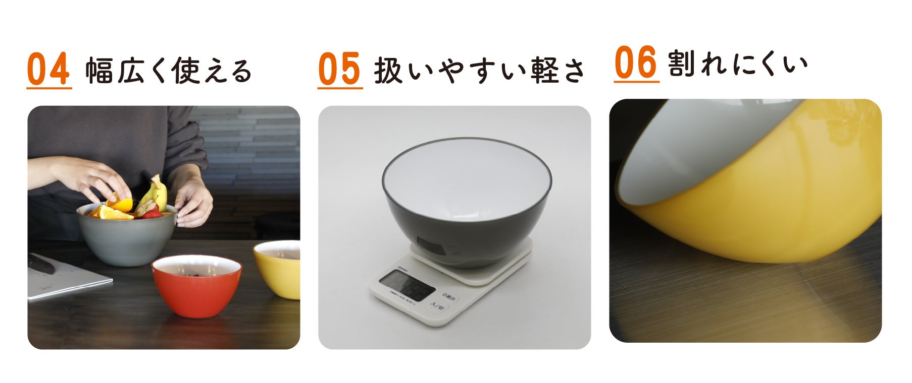 また、1番大きなサイズのボウルでも198gと軽量なので、お子様でも使いやすい。