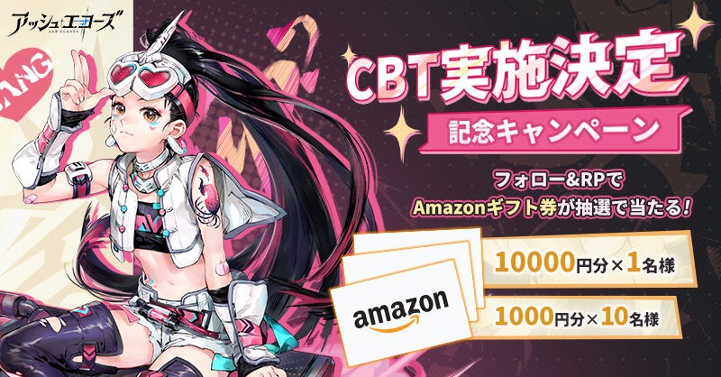 CBT実施決定を記念して、@Ashechoes_JPをフォロー&本投稿をRPした方の中から抽選でAmazonギフト券をプレゼントいたします。CBTの応募と合わせてぜひご参加ください!