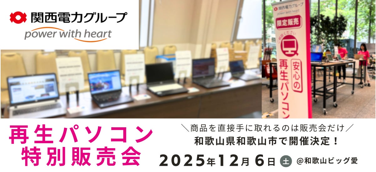 株式会社ポンデテック(関西電力グループ)が運営するPC nextは、2025年12月に和歌山県和歌山市で「再生パソコン特別販売会」を開催します。
