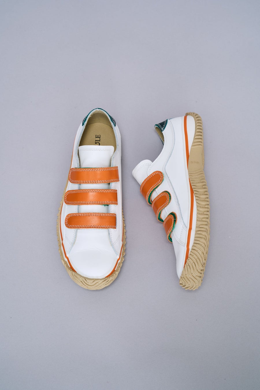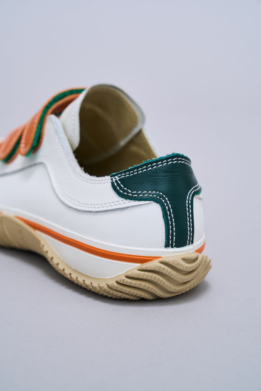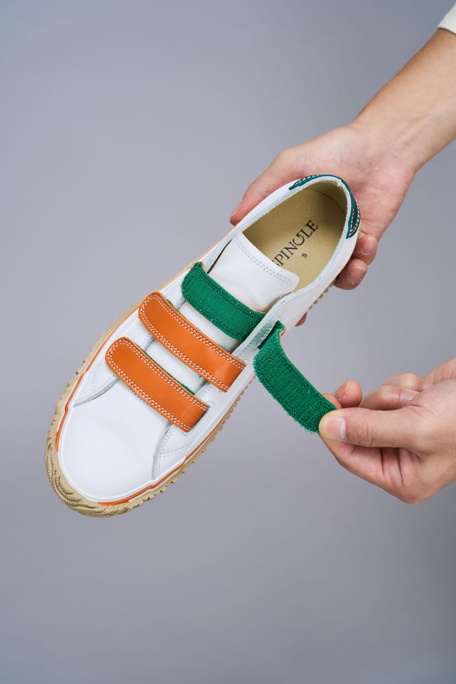 2026年は世界規模のスポーツイベントが続々と開催予定です。それに伴って「アクティブ」に「ボーダーレス」な交流が世界規模で広がると予想される中、SPINGLEはポップな色と牛、カンガルー、スムース、型押しといった革の組み合わせでこのような時流を表現しました。レースアップタイプのSP-1071はカンガルー革と牛革をパッチワークにして「ボーダーレス」を表現。屈曲部分にカンガルー革を使用することで柔らかい履き心地を、ハトメの一部を金にすることで「金メダル」を表現しました。3本ベルトタイプのSP-1072は、足への当りがやさしくなるようシュータンをカンガルー革にし、オレンジのカンガルー革のベルト裏をグリーンにすることでコントラストを強くし、「アクティブ」な印象にしました。