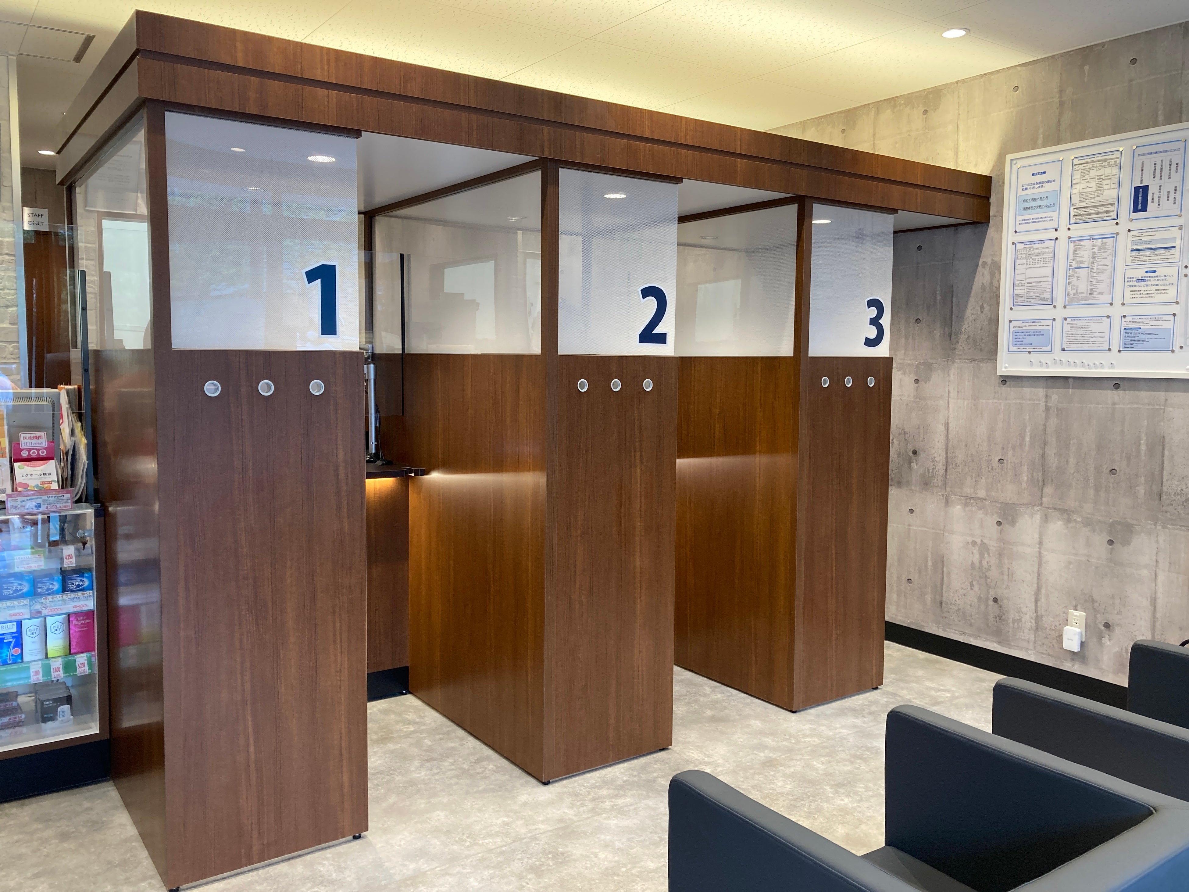 投薬カウンターはプライバシーに配慮したつくりとなっておりますので、お身体の不調やお薬のお悩みなども、安心してじっくりご相談いただけます。