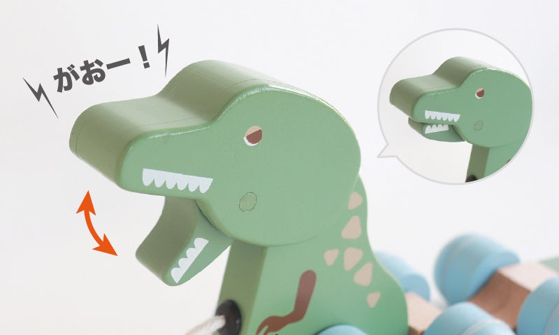 さらに、大きく開く口の造形を活かして「がおー!」と恐竜になりきることで、ごっこあそびにも自然と広がります。動きの面白さと、想像力を楽しむあそびの両方が楽しめます。