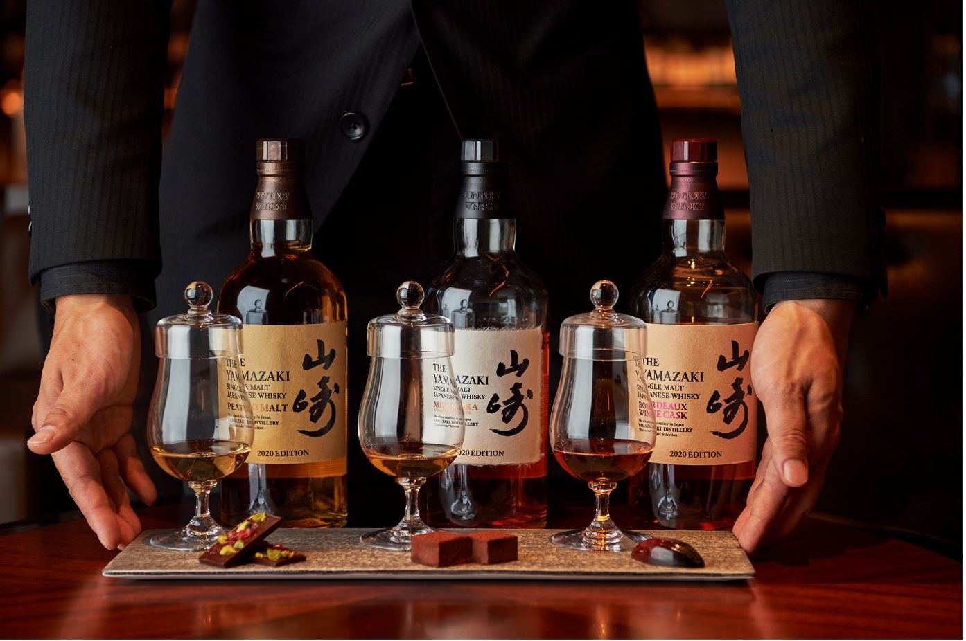 フォーシーズンズホテル東京大手町の最上階に位置するバーVIRTÙでは2020年山崎ウイスキーとエグゼクティブペストリーシェフによるチョコレートの贅を尽くした大人なペアリングをお愉しみ頂けます。カカオが織りなすアロマと山崎ウィスキーに潜む重厚な香ばしさ、ご自身の嗜好と感覚に合わせてお好みのペアリングをお愉しみください。