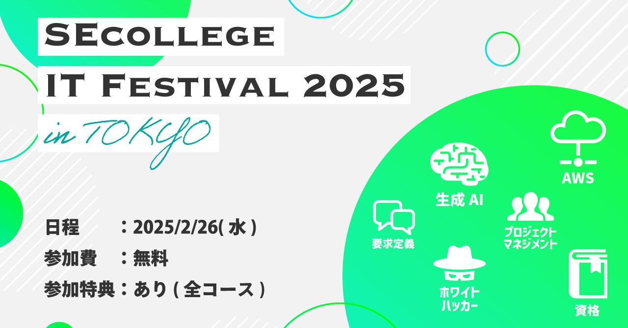生成AIやセキュリティなどのIT研修に無料で参加できるイベント『SEcollege IT Festival 2025』東京にて開催決定<2025年2月26日>