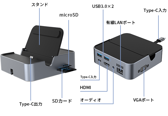 Switchドックが持つ機能は、【TRANX】にも全部収納されています。