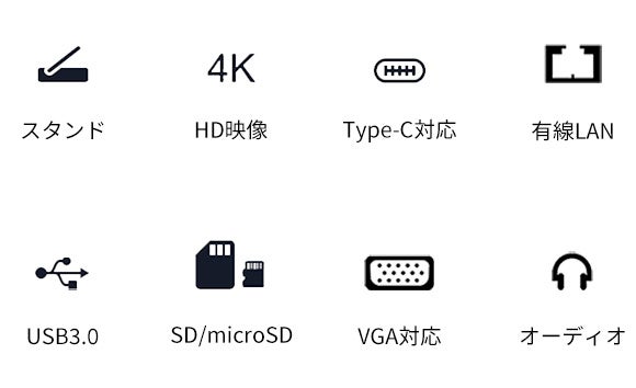 ※ HDMIやVGA端子からディスプレイに出力する際は、画面を出力する端末(スマホ、パソコン)が下記に対応している必要があります。