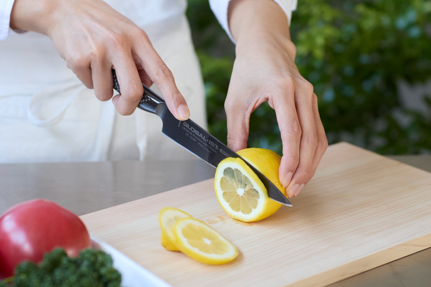 GLOBAL-ISTの滑らかな切れ味はそのままに、ステンレスの素材美を活かした深みのあるブラックカラーがキッチンに静かな存在感とモダンな趣をもたらします。