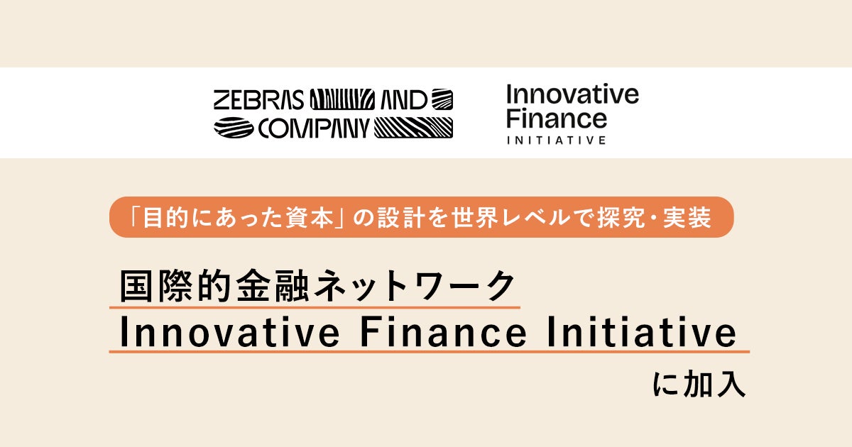 株式会社Zebras and Company(ヨミ:ゼブラ アンド カンパニー、本社:東京都港区麻布十番、代表取締役:阿座上陽平、田淵良敬、以下Z&C)は、このたび、社会・環境インパクトに適合する新しい資本の設計を実務家主導で探究・実装する国際的ネットワーク、Innovative Finance Initiative(IFI)にエコシステムパートナーとして加入しました。