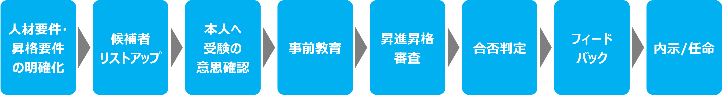 その背景としては、経営環境の急激な変化であったり、高齢化の進展や働き方等が大きく変わったりする中で、管理職の役割が高度化・複雑化していることが挙げられます。改めて管理職としての適性の有無を客観的に測る必要性が高まっていることや、本人のキャリア意識の尊重、フィードバックによる人材育成視点の重要性の高まり等も影響していることが推測されます。この傾向は今後も続くと予想されます。今回の調査をもとに想定される“選抜と育成”を実現するための昇進昇格審査フローは下記のような流れではないかと考えられます。そして、今までよりも客観的に適性を見極めるためのポイントと、昇進昇格審査に人材育成要素を入れるためのポイントとしては、下記のような事柄が考えられます。