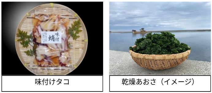 試食内容:➀味付けタコ ②あおさの味噌汁