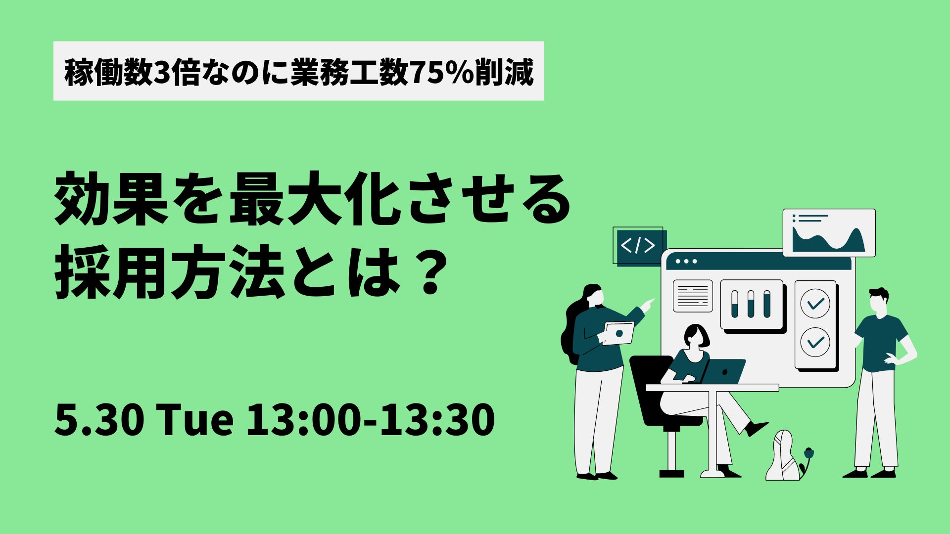 【5/30開催】業務工数は75%削減なのに、稼働数は3倍!「効果を最大化」させる採用方法とは?