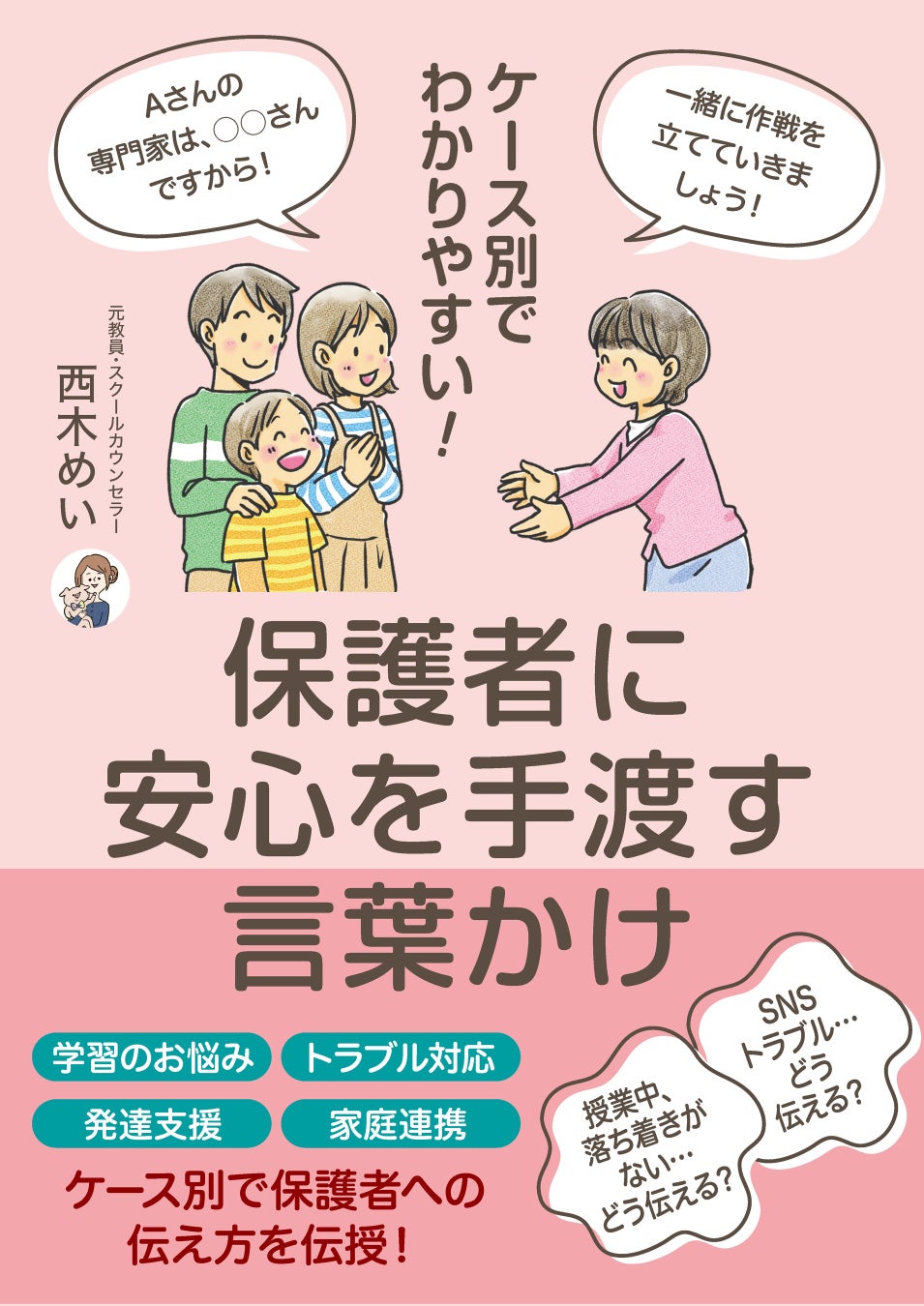 大人気スクールカウンセラー・めい先生の最新刊『ケース別でわかりやすい! 保護者に安心を手渡す言葉かけ』を刊行!