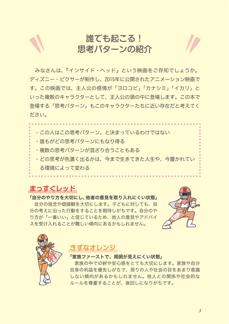 ▶学校現場でよくあるお悩みを、読者が想像しやすいエピソードでご紹介しています。保護者との「対話のカギとなるフレーズ」を各ページ太字にて記載。上記の「思考パターン」別の伝え方もお届けしています。