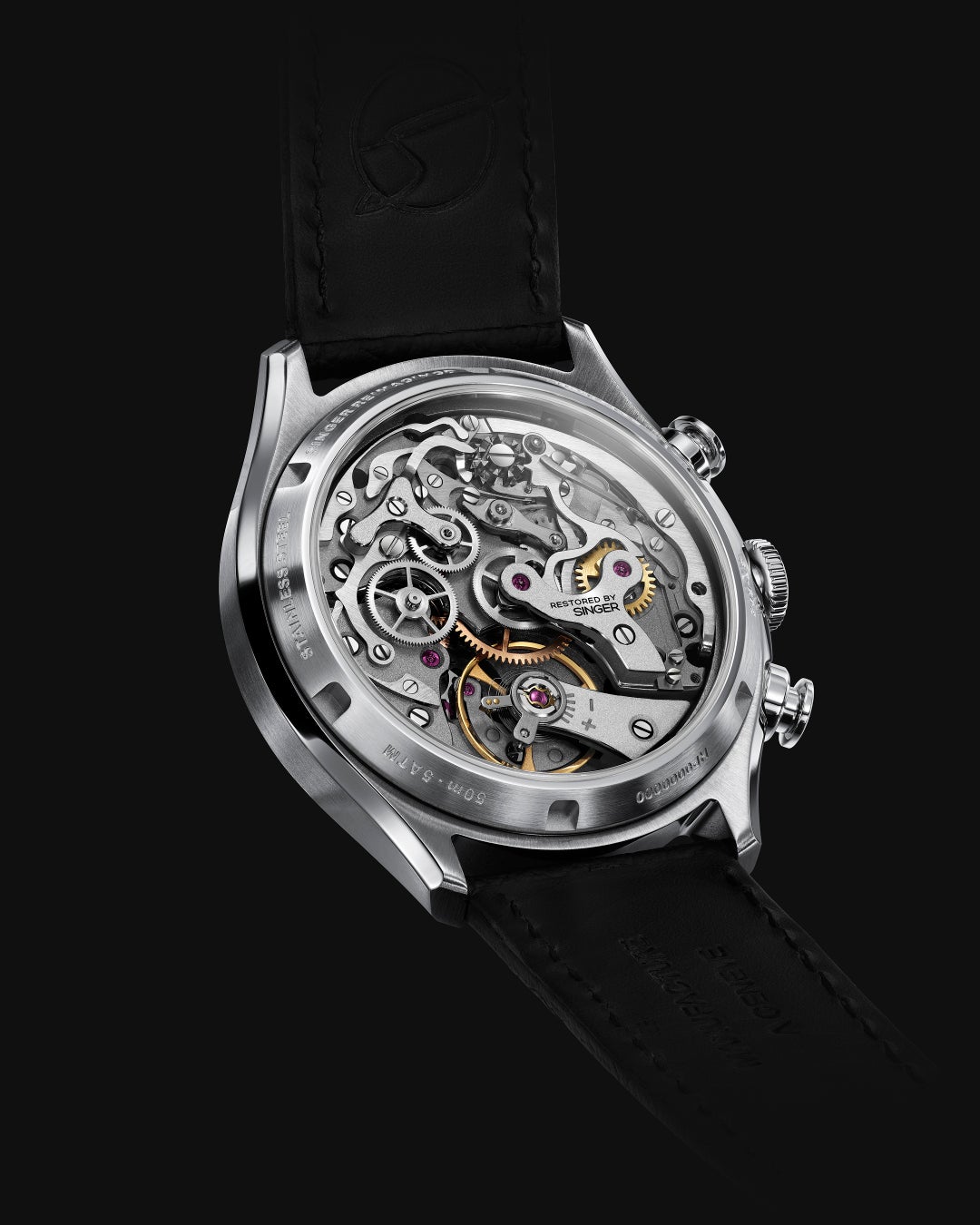 Valjoux 23 の完成形とも言えるこのムーブメントを、シンガー・リイマジンはすべてNOS(未使用・未組立)パーツから再構築。